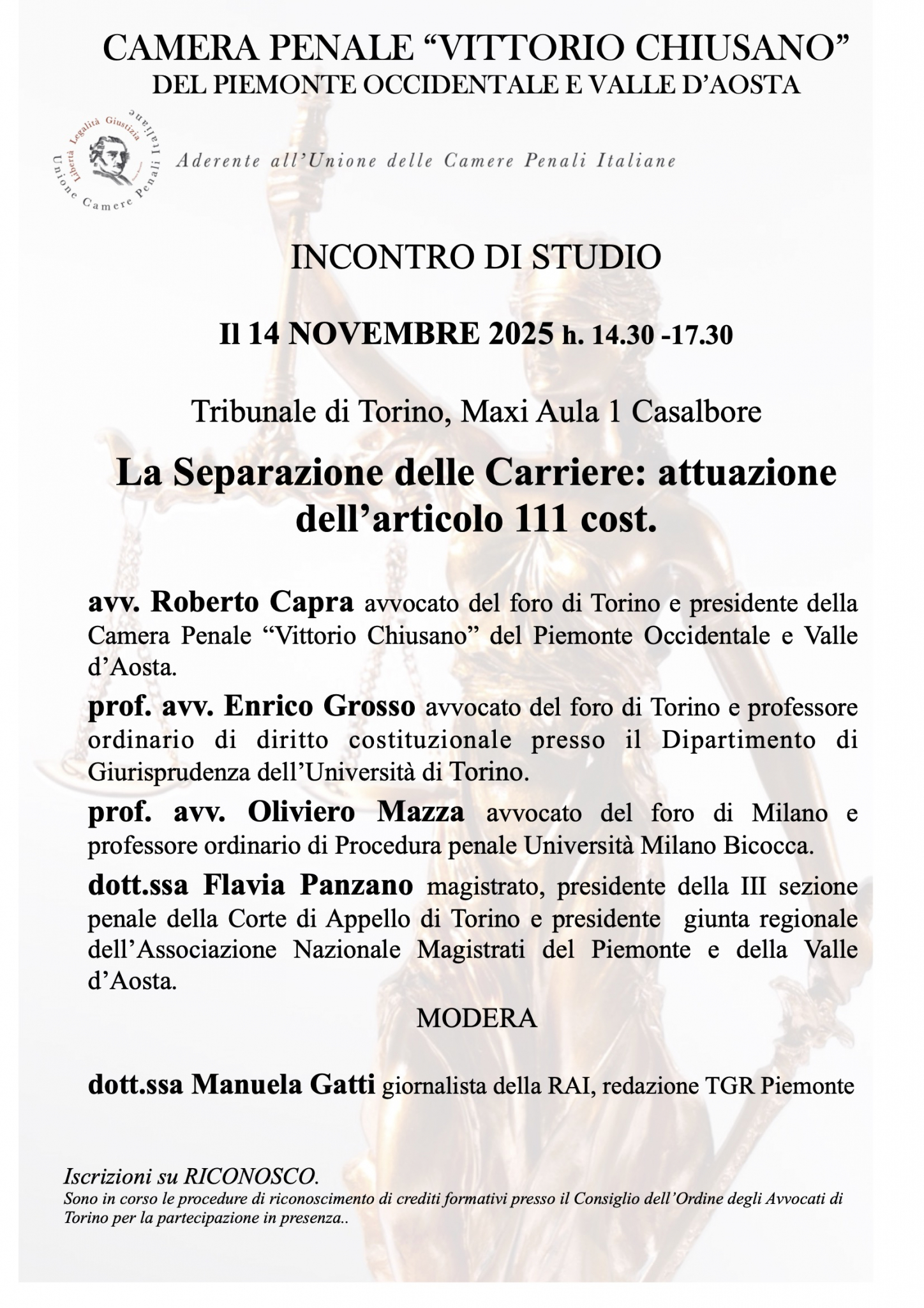 La Camera Penale “Vittorio Chiusano” del Piemonte Occidentale e Valle d’Aosta propone un incontro di studio sul tema della Riforma Costituzionale della Giustizia: