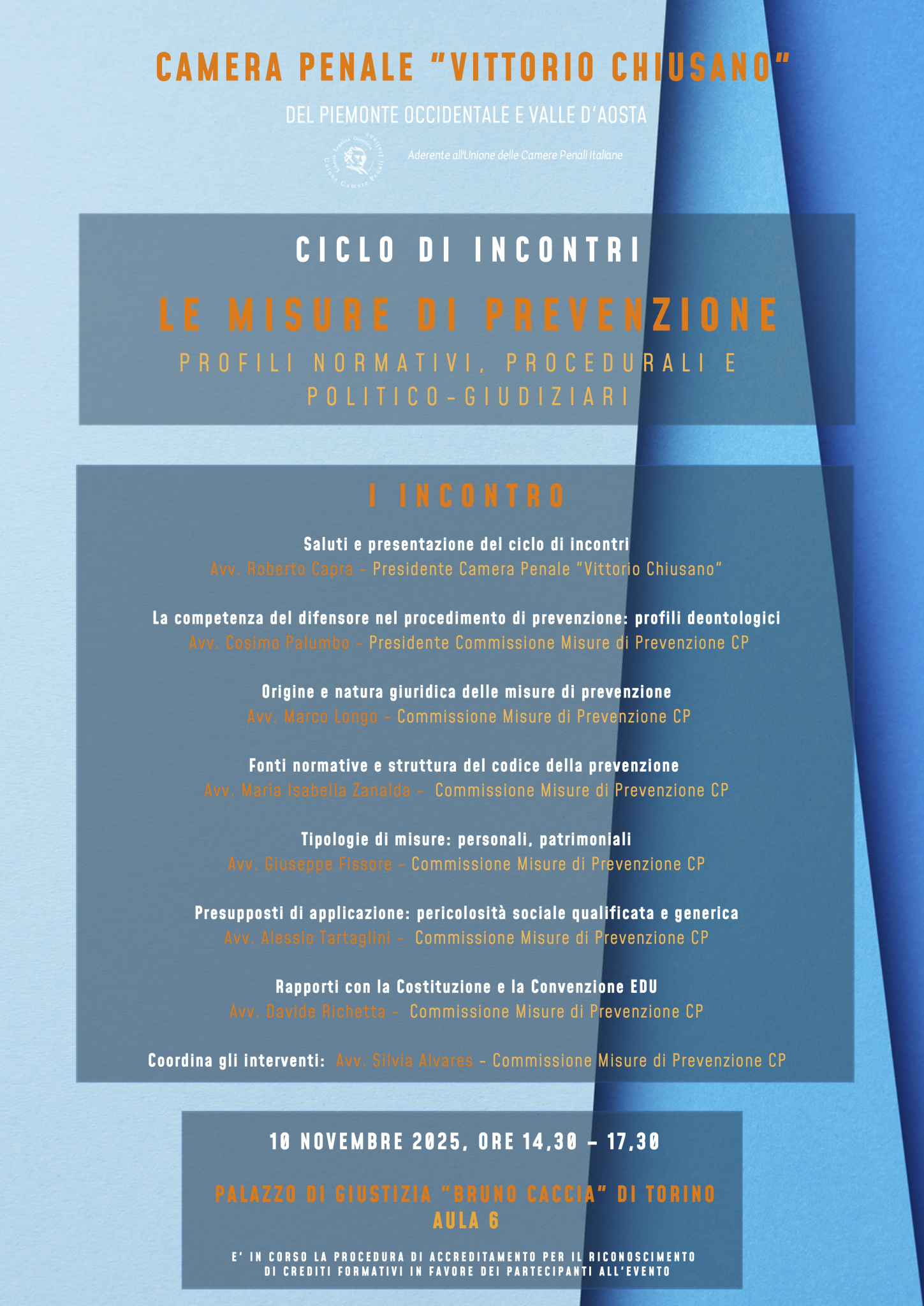 La Camera Penale “Vittorio Chiusano”, aderente all’Unione delle Camere Penali Italiane, inaugura un ciclo di incontri formativi dedicato al tema delle misure di prevenzione, con l’obiettivo di approfondirne origini, natura giuridica, presupposti di applicazione e rapporti con la Costituzione e la Convenzione EDU.